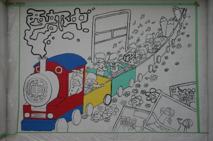 色塗りを開始しました。 今日は3組の生徒が協力して色を塗りました。