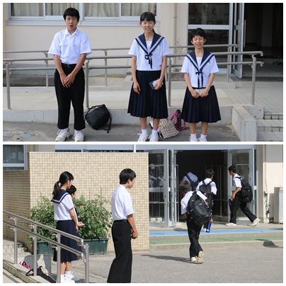 3年生がいないため、人数的にはさみしいあいさつ運動です。 少人数でも声は大変元気でした!