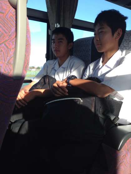 先頭のバスは一宮工業高校の横を通り過ぎました。