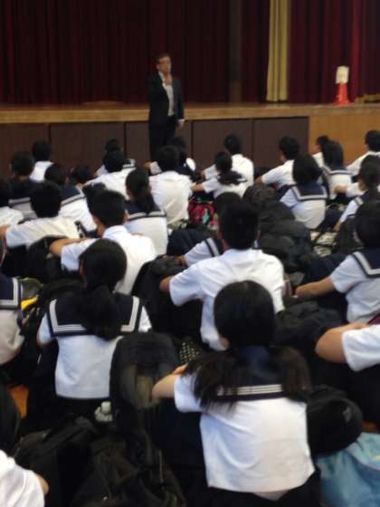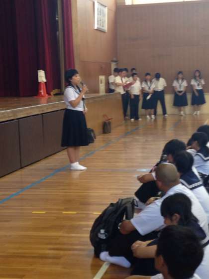 帰着式では添乗員の方へのお礼や代表の話を聞いています。 もうすぐ、解散になります。