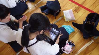 試合をタブレットで撮影してその場ですぐに確認をしました。