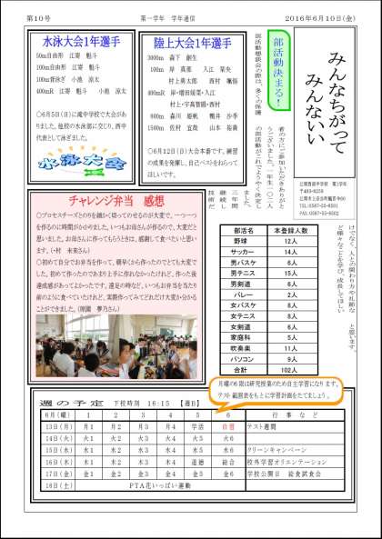 1年学年通信「みんなちがってみんないい」第10号を発行しました。