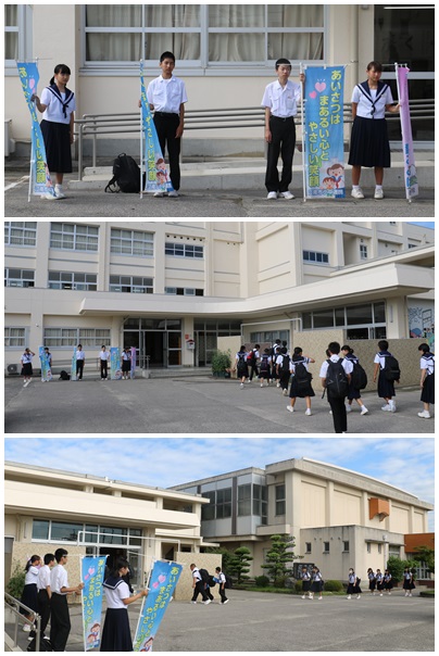 さわやかな雰囲気の中、気持ちのよいあいさつ運動が行われました。