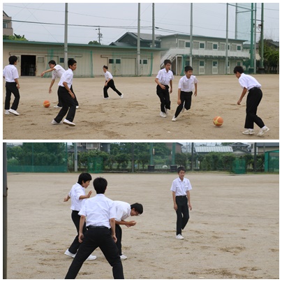 昼休みのグランドはバスケとサッカー。 テスト週間中ですが、多くの生徒が気分転換です。