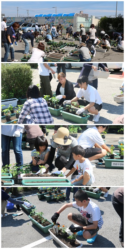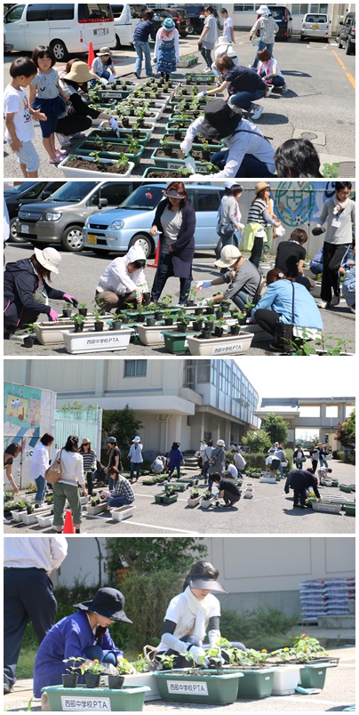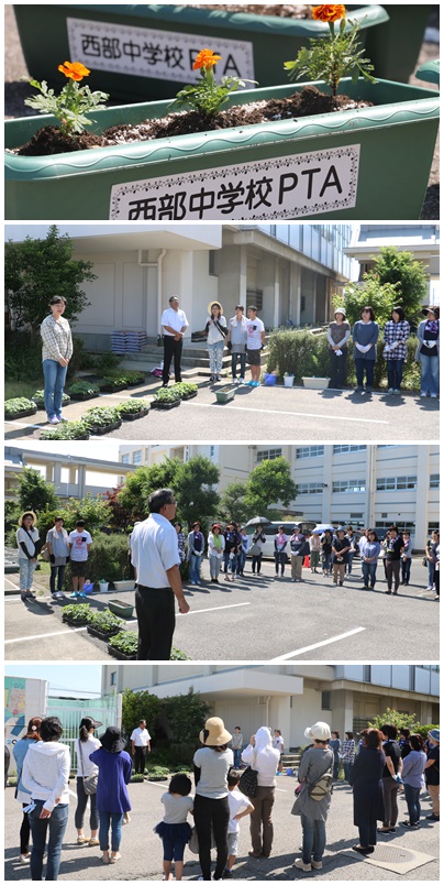 PTA花いっぱい運動 公開日 2016/06/18 更新日 2016/06/18 PTA活動 すばらしい青空の下、PTA花いっぱい運動が行われました。 ポットの苗をプランターに移植し、各地区へ持ち帰っていただきました。 秋の植え替えまで、各地区での水やり等でお世話をおかけしますが、どうぞよろしくお願いします。 早朝より、PTA実行委員さん・地区委員さんありがとうございました。 いいね(0)