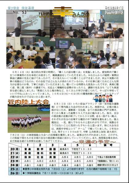 2年学年通信「ひとりの幸みんなの」第53号を発行しました。
