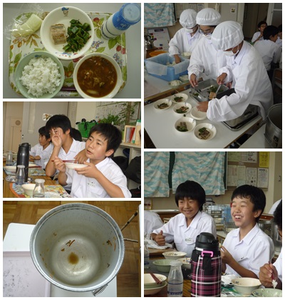期末テスト初日を終えての給食。ホッとした様子の生徒たちは、とても楽しく給食を食べていました。食欲も旺盛!!