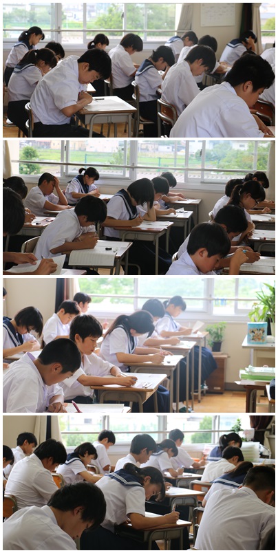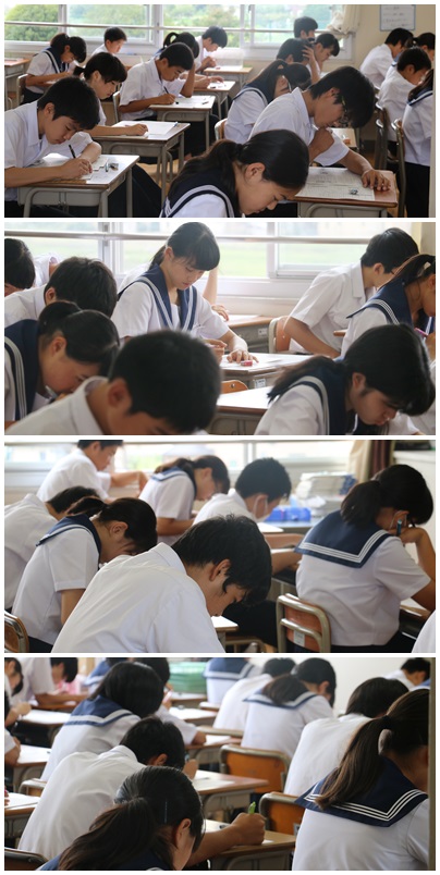 テスト最終日、今日も問題用紙に集中です。 手応えはいかがですか。