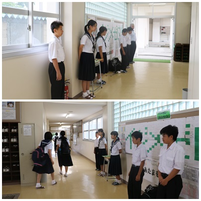 外の部活動が校舎内トレーニングだったため、あいさつ運動の時間帯に通る生徒が少なかったようです。