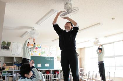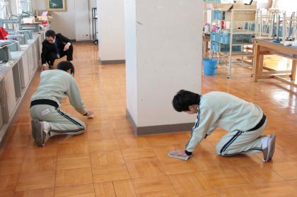 体育館や教室のワックスがけ,扇風機のそうじ,床の水ぶきなど,どの生徒も丁寧にそうじしてくれました。