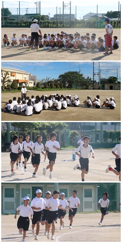 夏休み中は、各部活動の練習が始まる前の7時30分から30分間の練習です。