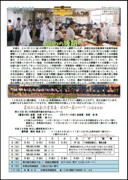 2年学年通信「ひとりの幸みんなの」第62号を発行しました。