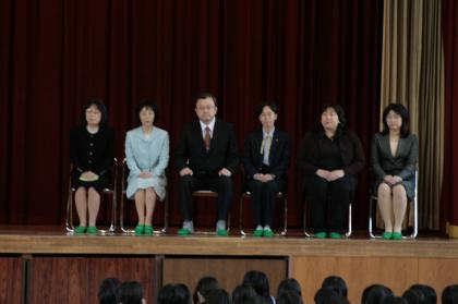 新しく西部中学校に赴任した6名の先生方を迎え,着任式を行いました。