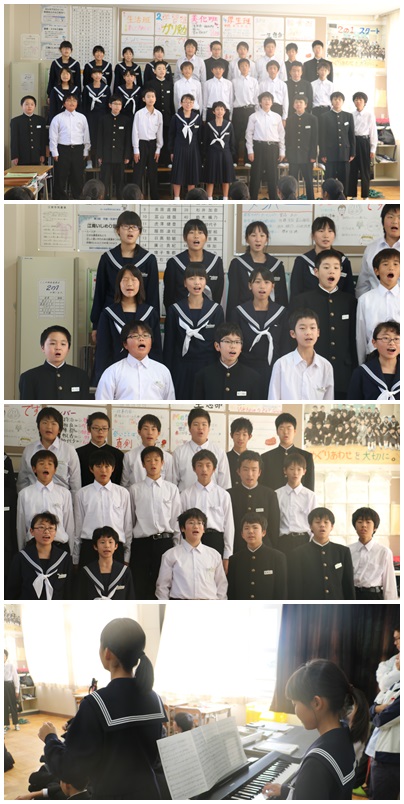 1年3組は、2年生の教室で交流会を開催しました。 1年生らしい元気いっぱいの合唱でしたね。
