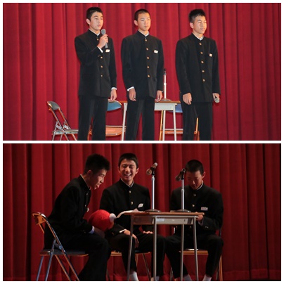 有志発表2。 チョキーズのみなさんです。3人トリオのコントです。