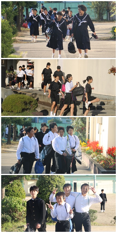 大変寒い朝でした。風も強かったですね。 しかし生徒は元気いっぱい。 笑顔で教室へ向かいます。