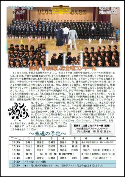 2年学年通信「ひとりの幸みんなの」第67号を発行しました。