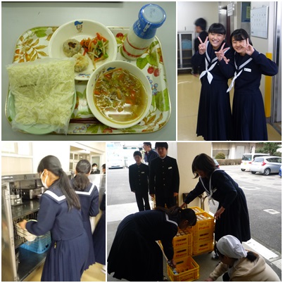 今日の給食は、海鮮ラーメン(中華めん)、牛乳、ねぎまんじゅう、三色和えでした。久しぶりのラーメンに、生徒たちは大喜び!おかわりジャンケンも必至でしたね。