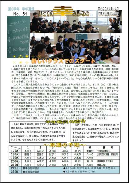 3年学年通信「ひとりの幸みんなの」第81号を発行しました。
