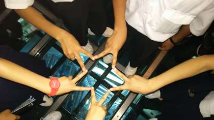 スカイツリーは今日で5周年! 5人でスカイツリーのシンボルを作りました。