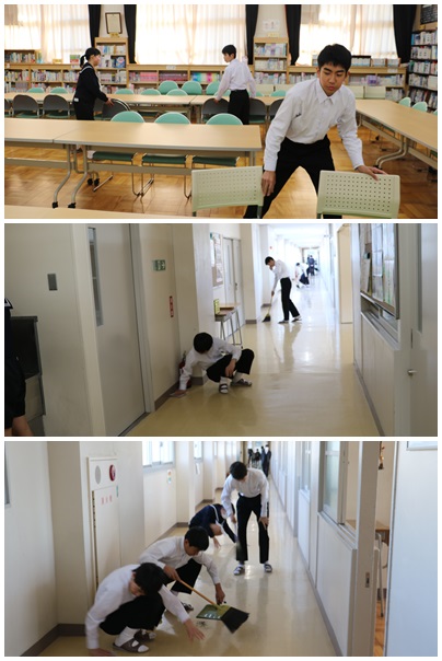 清掃活動の様子です。 3年生の姿を見てきた1年生、どの場所でも集中して清掃に取り組んでいます。