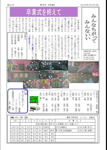 2年学年通信「みんなちがってみんないい」第41号を発行しました。