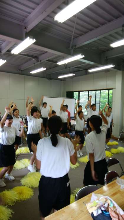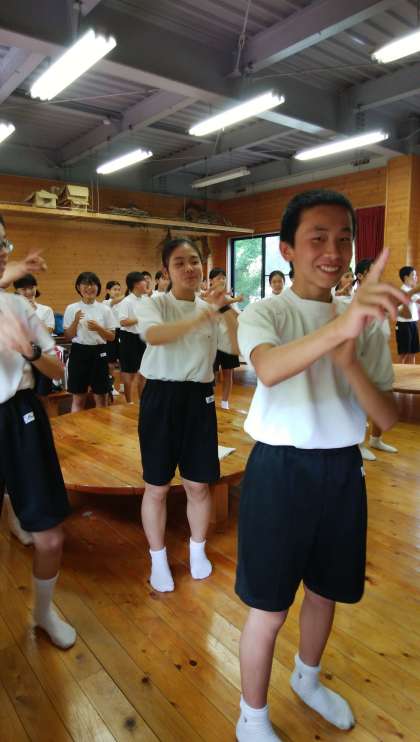 入村式が終わり、キャンプファイヤーのスタンツ練習をしています。