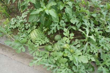 以前にも紹介した6、7組で育てているスイカがずいぶん大きくなりました。
