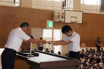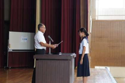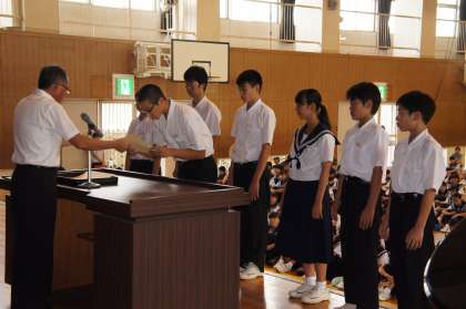終業式 公開日 2018/07/20 更新日 2018/07/20 学校生活 給食後に、1学期の終業式を行いました。 管内大会水泳入賞者への表彰、吹奏楽への楽器の贈呈、剣道部の昇級審査結果に続いて、校長先生からは、なりたい自分像をめざして何かをかえる夏休みにしてほしいと話がありました。 いいね(0)