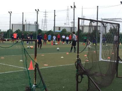 試合の後には、GK講習会に参加して、グランパスのGKコーチにトレーニングを勉強させてもらいました。